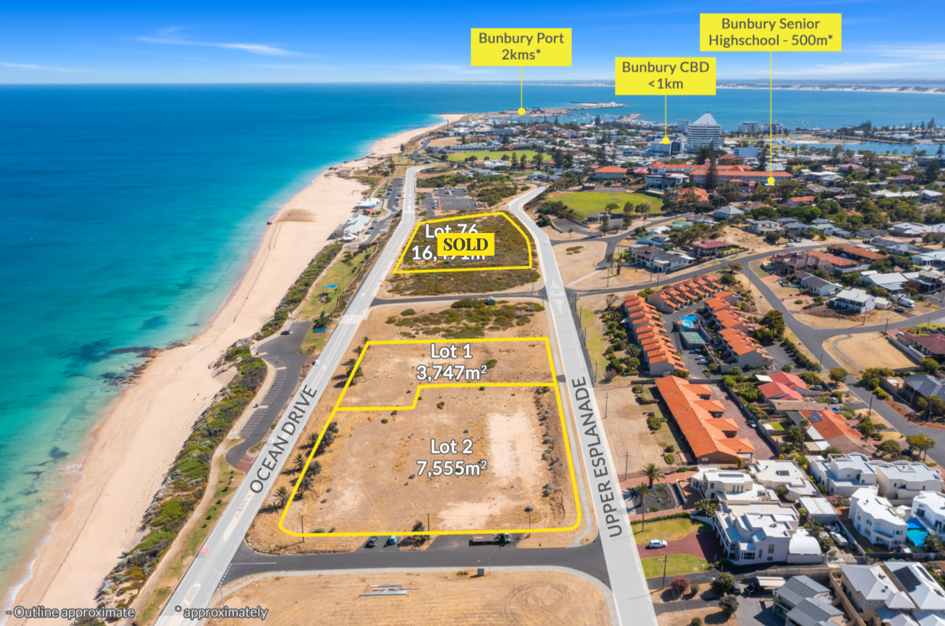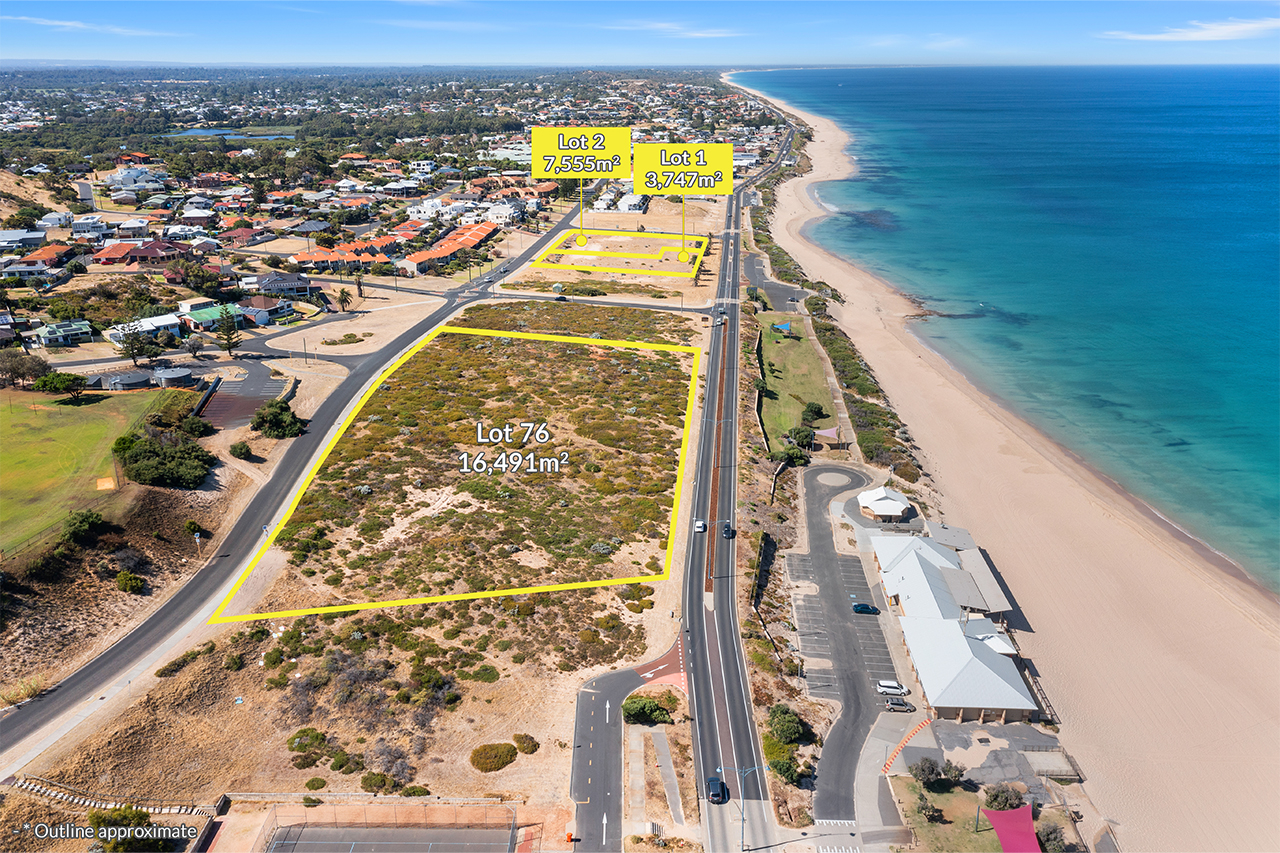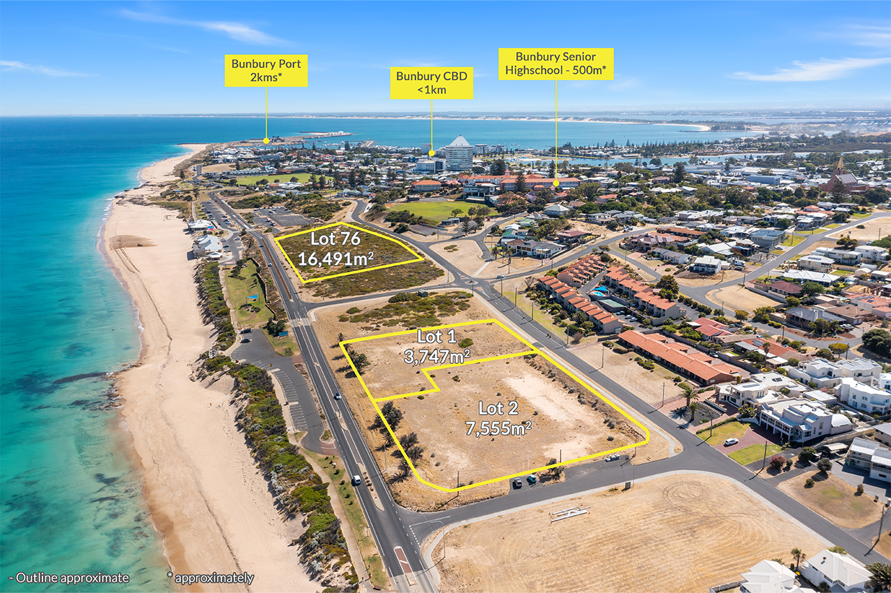 Lots 1 & 2 of 75 Ocean Drive, Bunbury are two vacant ocean front development sites with permanently unhindered views of the Indian Ocean. The sites have the scale necessary to become place making development sites and shape the future of the Bunbury Back Beach area.