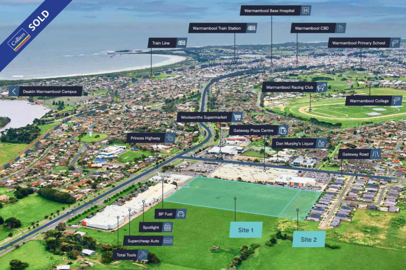 Colliers and Harris + Wood are pleased to exclusively offer for sale Warrnambool’s Largest Remaining Commercial 1 Zoned Site, strategically positioned adjoining the Gateway Plaza Shopping Centre anchored by Coles, Kmart and Aldi.